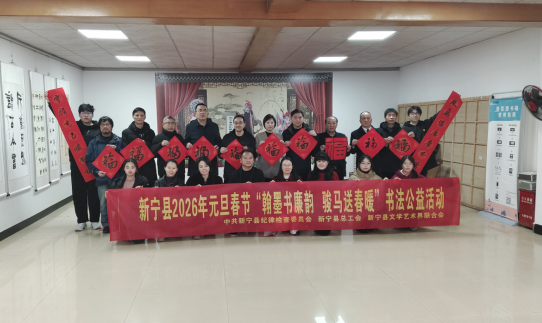 文章来源:新宁廉政网 编辑: 时间:2026-02-07“翰墨飘香迎新春,清风廉韵暖人心”。2月5日,在新宁县城乡供水公司活动现场,一副副散发着墨香、蕴含着廉洁文化寓意的春联和“福”字在书法家们的笔下一一挥就,职工们笑意盈盈地围绕在旁,挑选心仪的作品,现场洋溢着欢乐祥和的节日氛围。这是新宁县纪委监委与县总工会、县文联联合举办“翰墨书廉韵、骏马送春暖”迎新春送春联的生动一幕。